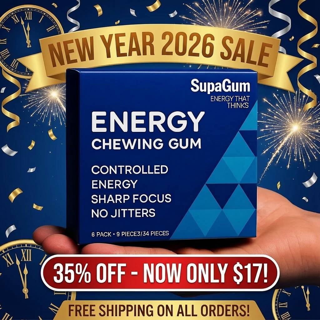 SupaGum delivers energy through chewing, allowing caffeine to absorb faster than drinks. Each piece contains 80 mg of natural caffeine balanced with L-Theanine for smoother, more controlled focus. No sugar, no liquid, and no waiting. Chew when you need focus and stop when you don’t.